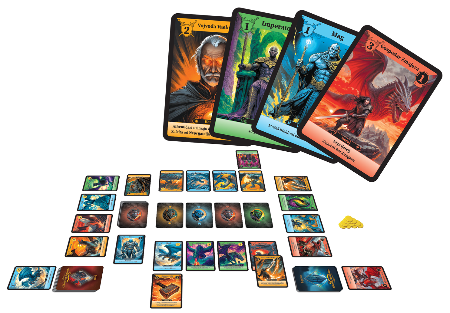 „Pod Zmajevim Suncem“ je strateška duel igra sa kartama u kojoj igrači preuzimaju uloge Gospodara Zmajeva, birajući karte Heroja, Zmajeva i Događaja kako bi stvorili najmoćniju armiju. Cilj igre je sakupiti što više zlatnika kroz karte zmajeva, borbe, tokene iz riznice i karte događaja. Svaka odluka i potez igrača može preokrenuti tok igre, čineći svaku partiju jedinstvenim izazovom!